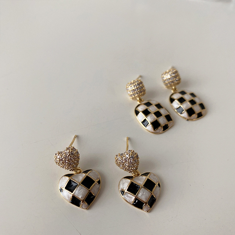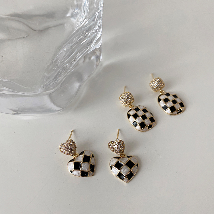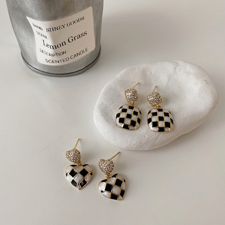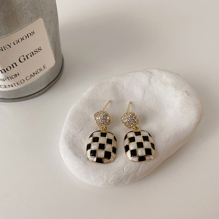 These French Checkerboard Earrings are crafted from metal and feature a stylish retro design with a geometric shape. The electroplating process adds a touch of sophistication. Please note that due to their handmade nature, some earrings may exhibit slight traces of the crafting process.